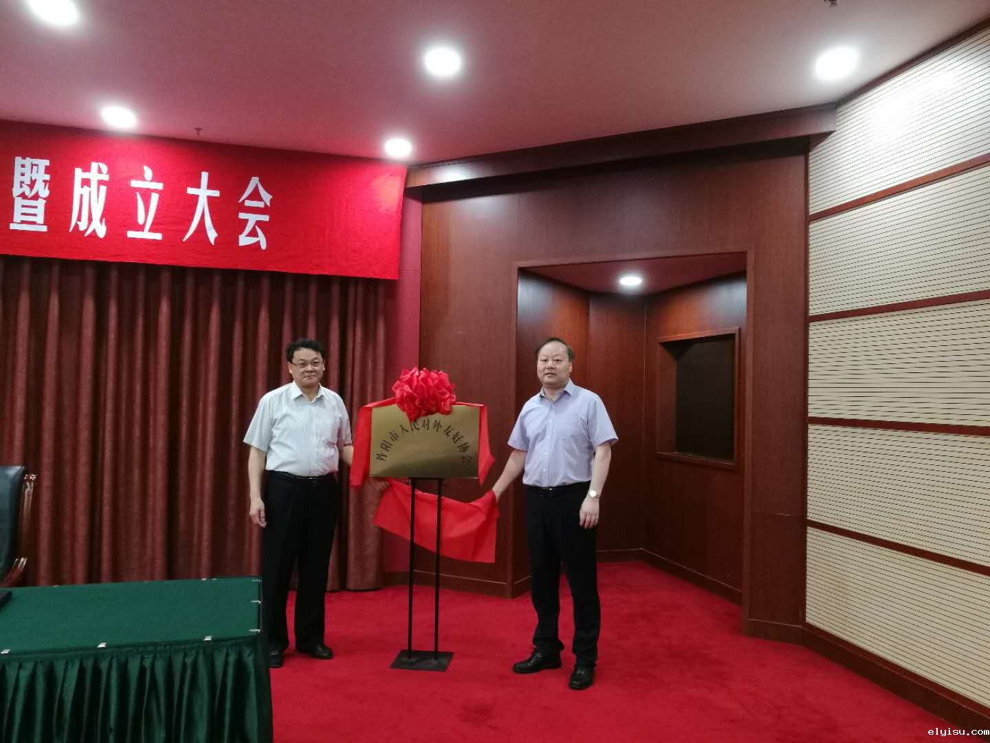会上,黄万荣和省友协副会长蔡锡生共同为“丹阳市人民对外友好协会”揭牌。