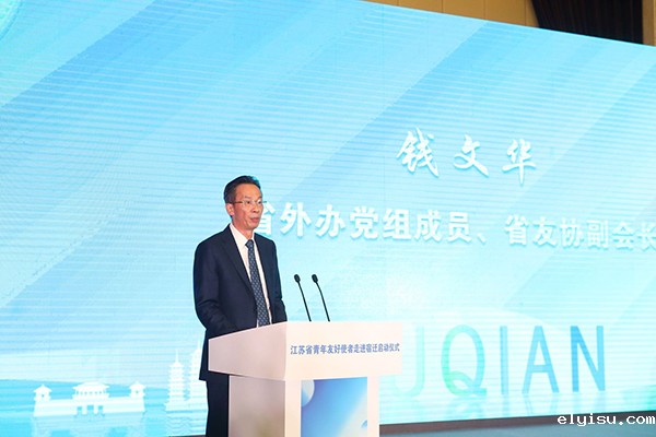 5月20日上午,江苏省青年友好使者走进宿迁启动仪式举行。钱文华副会长在启动仪式上说,走进宿迁,近距离感受这座城市的历史积淀与时代脉动,我们可以真切触摸西楚霸王崇尚武功、敢作敢为、厚情重义的历史画卷,可以尽情领略酒都宿迁的春光烂漫、城市精美、水韵温婉,可以直观看到现代宿迁厚积薄发、开拓进取、创新突破的发展成果。他指出,通过这次走进宿迁活动,各位青年友好使者对宿迁必将会有一个新的认识、新的了解、新的期待。希望大家将这种认知和期许转化为对宿迁的关心和支持,结合自身的行业特点、专业优势和外事资源,为宿迁扩大对外交往搭建新的友谊桥梁,为这座历史名城开放发展注入新动力。