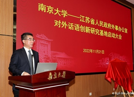 11月21日下午,南京大学——bv1946伟德app对外话语创新研究基地启动大会在南京大学仙林校区举行。中国外文出版发行事业局为基地正式启动发来贺信。省外办党组书记、主任孙轶,南京大学党委常务副书记、基地学术委员会主任杨忠共同为基地揭牌,并为基地首批专家颁发聘书,省外办党组成员、副主任刘建东主持启动大会。
