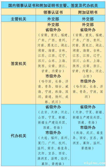 在中国,外交部是附加证明书签发管理工作的主管机关,外交部领事司是具体执行部门,附加证明书由外交部及其委托的地方外办签发。