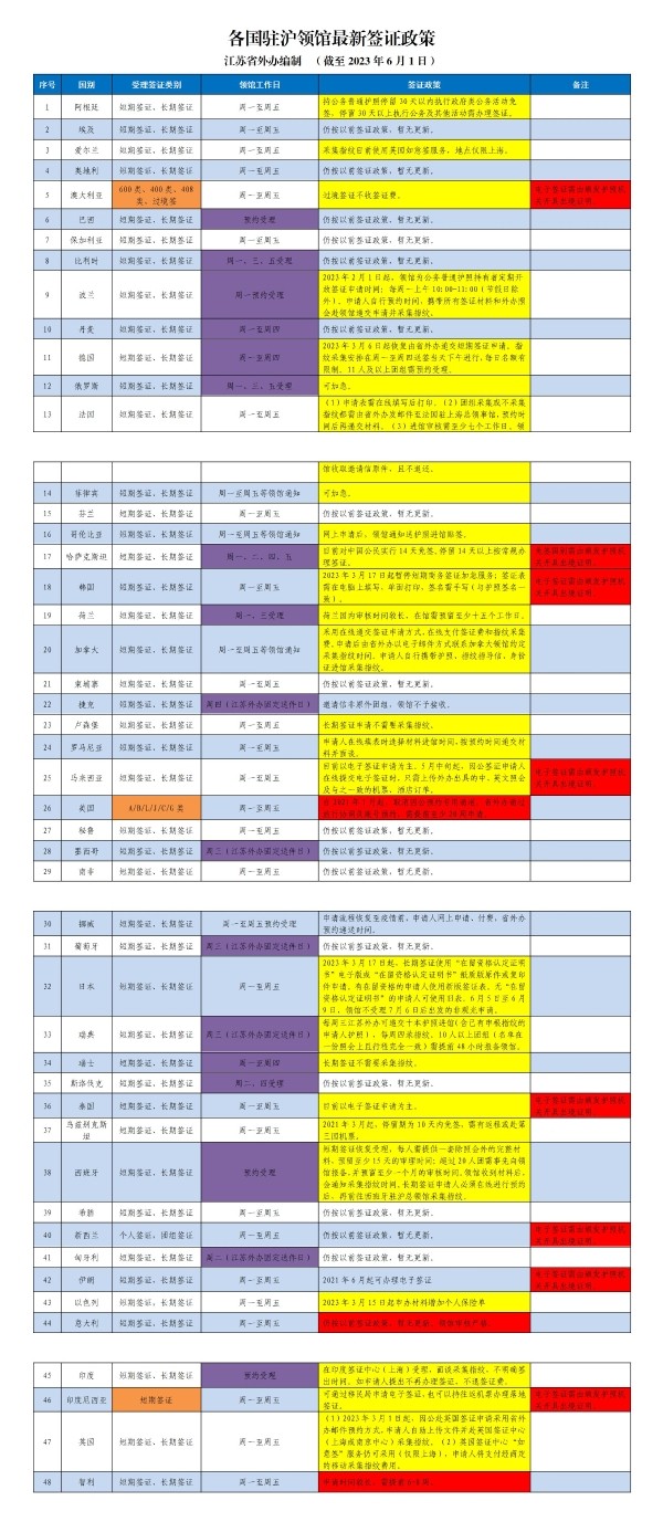 各国驻沪领馆最新签证政策