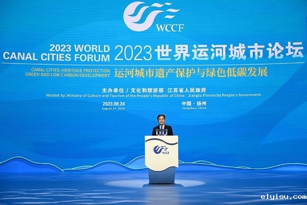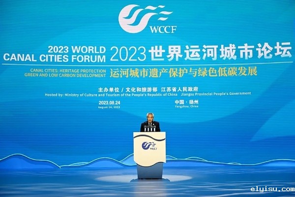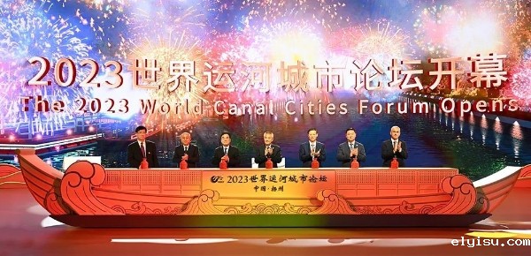 与会领导共同启动2023世界运河城市论坛。开幕式后,举行了主旨演讲,通过了《世界运河城市遗产保护与绿色低碳发展扬州倡议》。