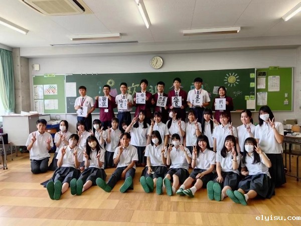 (宿迁市学生代表与石川县金泽商业学校学生交流书法)