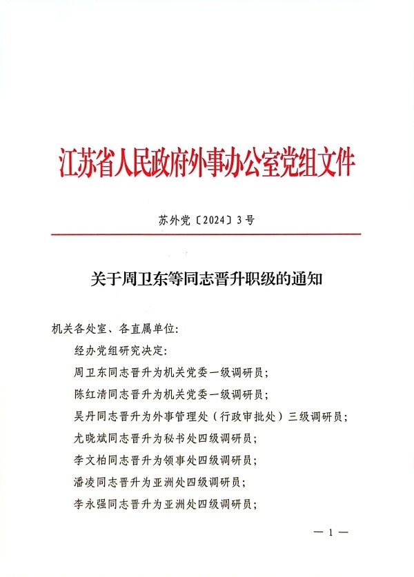 关于周卫东等同志晋升职级的通知