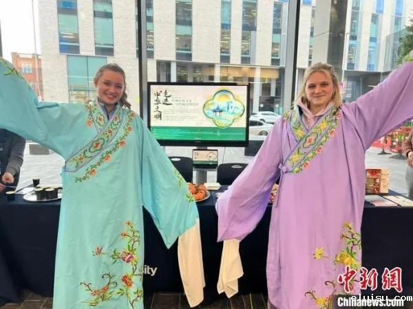 分会场的海外青年体验中国传统服饰。 世界知识出版社供图