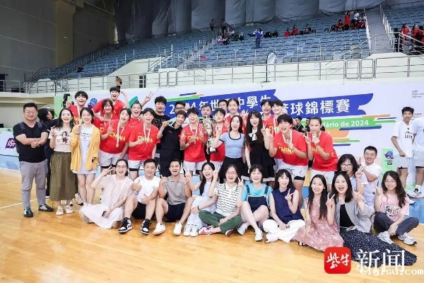 7月2日,江苏大学生参访团前往澳门塔石体育馆观看2024年世界中学生篮球锦标赛。决赛现场,运动员们热血逐梦奋勇拼搏,江苏大学生参访团在场边为运动员们加油喝彩。最终,中国女子一队以72:65战胜法国队夺得冠军。胜利的喜悦和运动员的体育拼搏精神打动了江苏大学生,闭幕式上,同学们兴奋地与冠军团队合影留念。