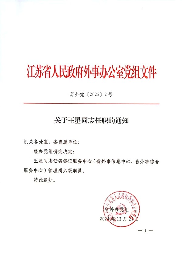 关于王星同志任职的通知